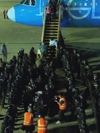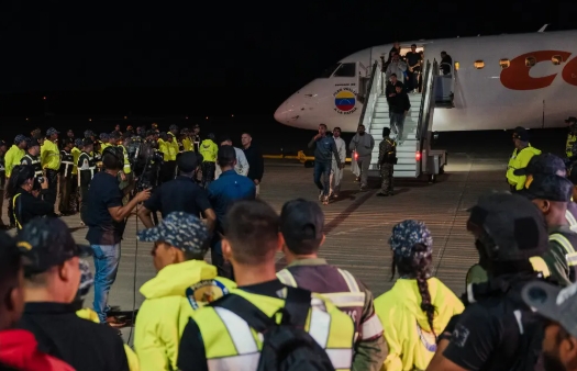 今年2月,一架載有委內瑞拉移民的遣返航班從美國抵達委內瑞拉首都加拉加斯。 《紐約時報》
