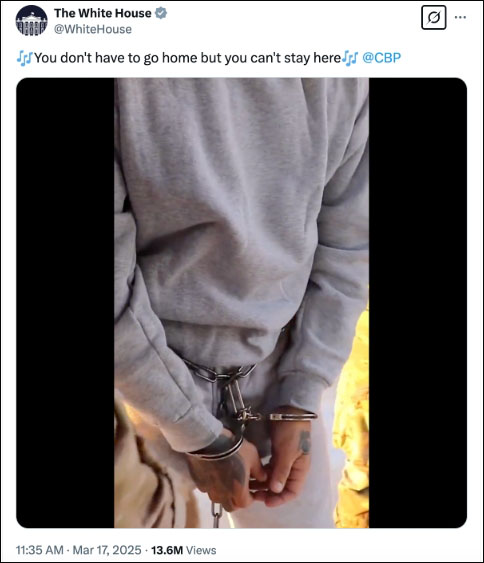 3月17日,白宮在X平台上喊話移民:你們可以不回家,但你們不能留在這