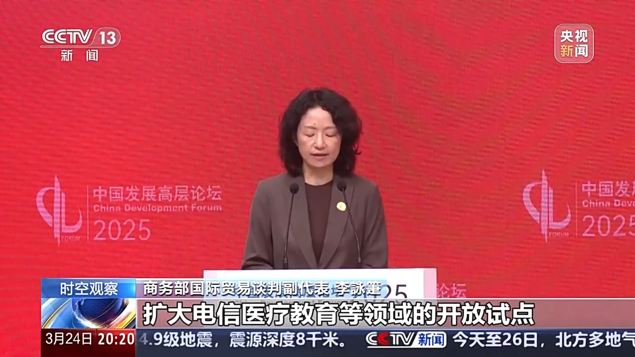 商務部國際貿易談判副代表 李詠箑:上個月我們發佈了2025年穩外資行動方案,推出20項政策舉措,支持跨國公司投資中國深耕中國。下一步我們將繼續推進服務業擴大開放綜合試點,推動互聯網文化等領域有序開放,擴大電信醫療教育等領域的開放試點。