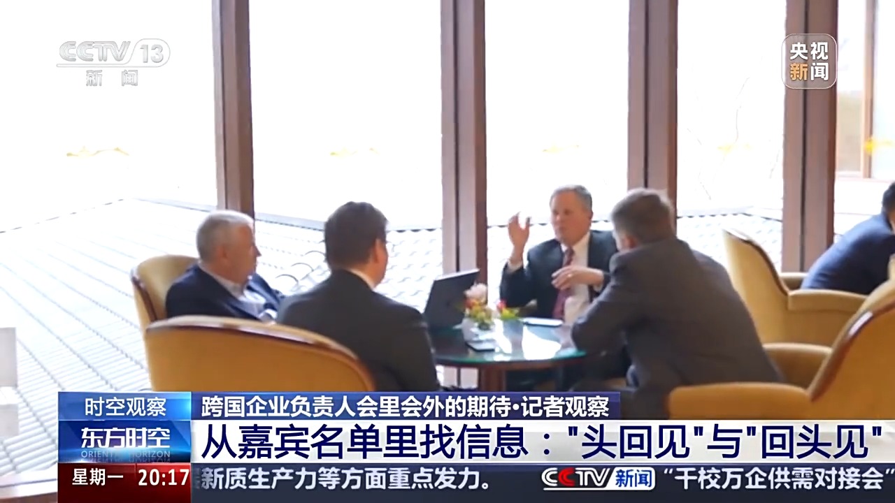 總枱央視記者 張歆:每年外方嘉賓名單會在論壇開幕前一天對外宣佈,我會認真地看,看哪些跨國企業CEO又來了,以及哪些跨國企業CEO第一次來,這本身很有信息量,能看出哪些企業是長期密切關注中國,以及哪些企業看好中國的新機遇,第一次來參與。今年我明顯發現,中國進一步高水平開放領域來的外資企業更多,比如金融、生物醫藥等等。同時,來自共建“一帶一路”國家的外資企業數也有所增加。