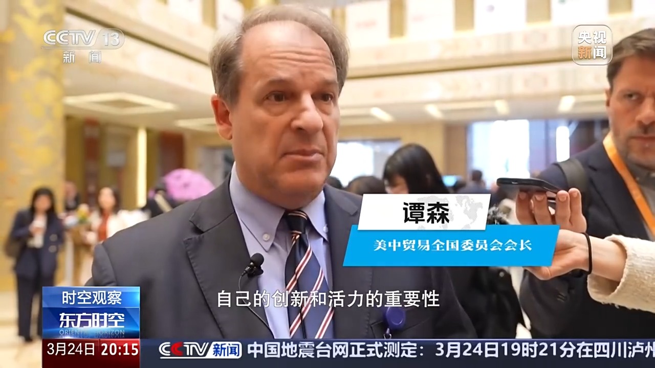 美中貿易全國委員會會長 譚森:世界上最具創新力的兩個經濟體是美國和中國。這就是為什麼我們有這麼多公司在這裏,因為他們認識到自己的創新和活力的重要性,也是為了自己的全球競爭力。