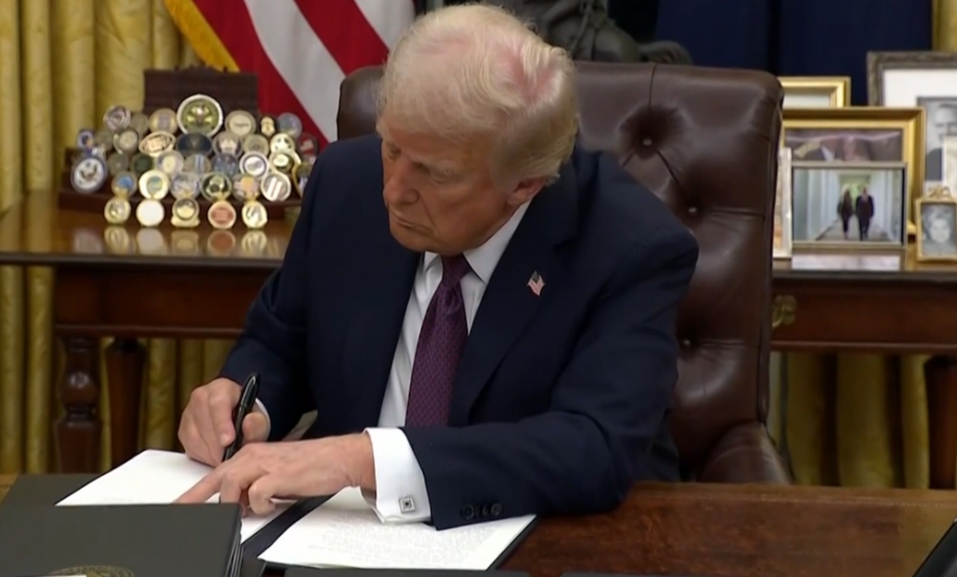 1月20日,特朗普簽署行政命令,暫停所有對外援助計劃 視頻截圖