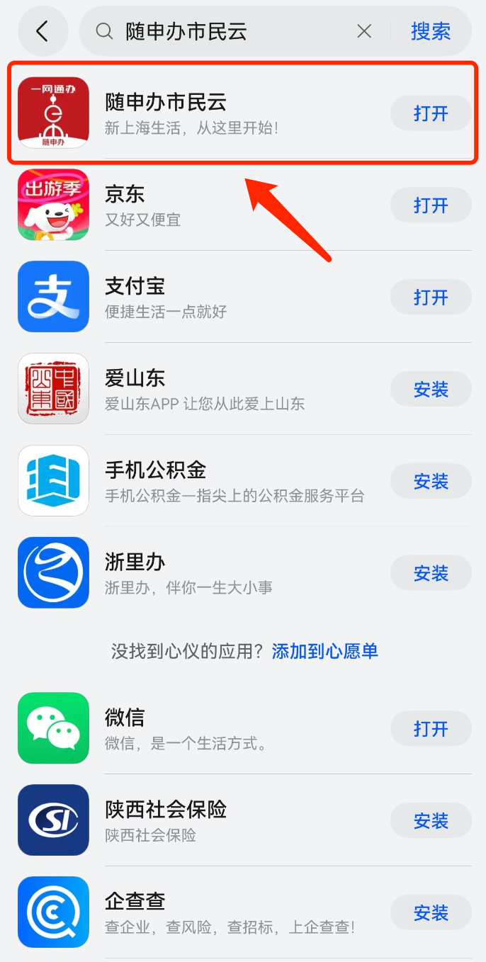 對於已經升級到鴻蒙操作系統5的用户,可通過以下方式獲取:打開「華為應用市場」搜索「隨申辦市民雲」即可獲取應用