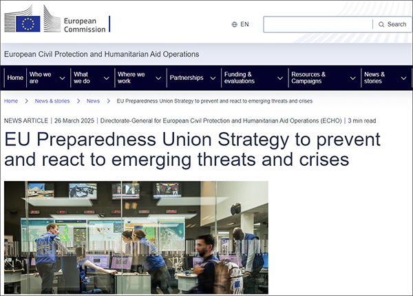 歐盟防範聯盟戰略中稱,整個歐洲大陸的公民應該採取實際措施,確保為緊急情況做好準備,這包括儲備至少維持三天的基本物資。