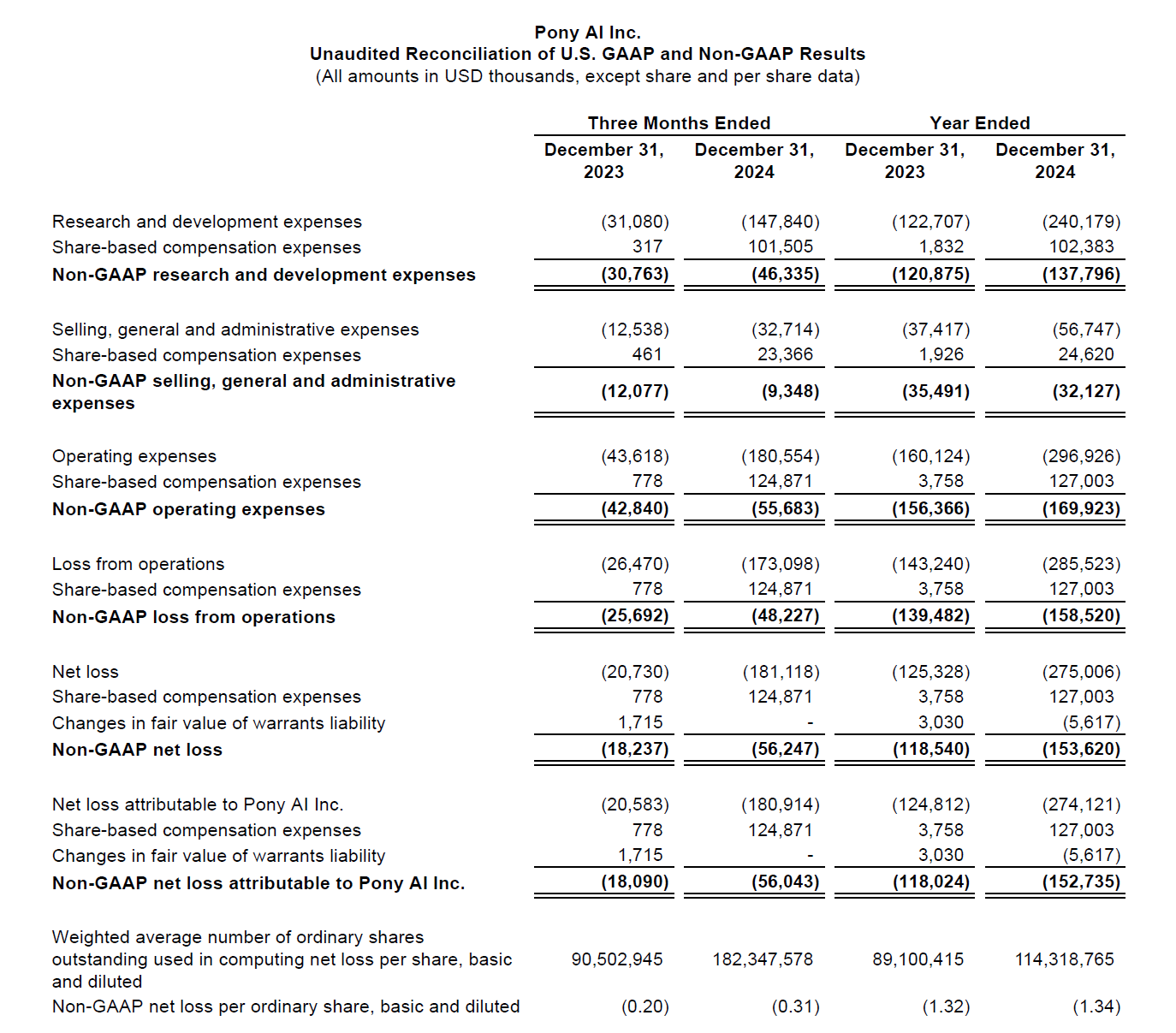 2024年,小馬智行運營費用為2.97億美元(約合人民幣21.6億元),同比增長85.4%。研發費用為2.4億美元(約合人民幣17.4億元),同比增長95.7%,佔總運營費用的80%以上。