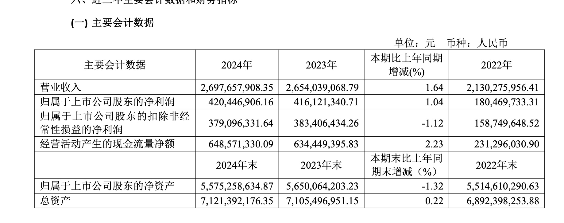 財報數據顯示,昊海生科2024年實現營業收入26.98億元,同比增長1.64%;歸母淨利潤4.20億元,同比增長1.04%。儘管從整體上看,公司的營收和淨利潤均實現了正增長,但增速卻明顯放緩,顯示出公司在面對市場競爭和政策調整時的挑戰。