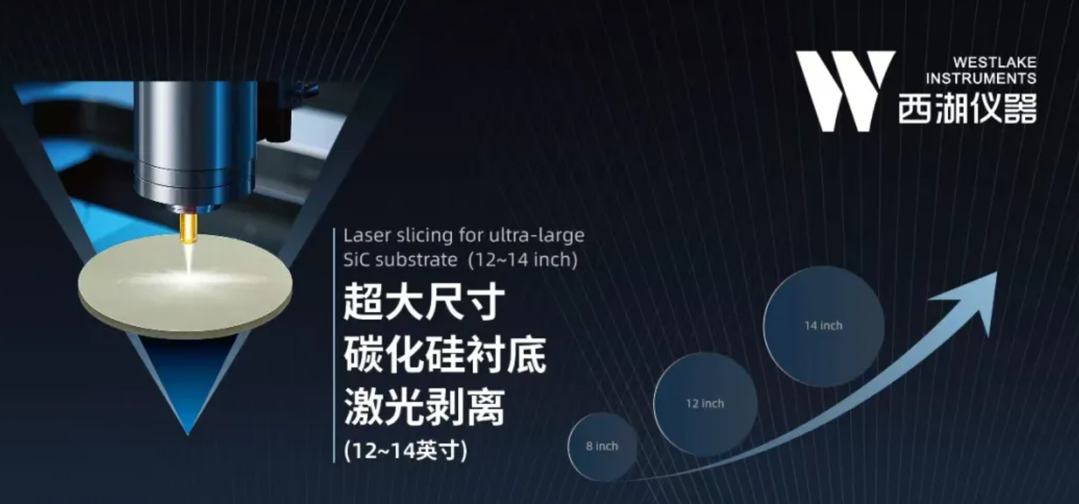 2024年12月,國內碳化硅頭部企業已披露了最新一代12英寸碳化硅襯底,在引領國際發展趨勢的同時,也提出了12英寸以上的超大尺寸碳化硅襯底切片需求。與之相應,西湖儀器以最快速度推出了“超大尺寸碳化硅襯底激光剝離技術”,率先解決了12英寸及更大尺寸的碳化硅襯底“切片”難題。
