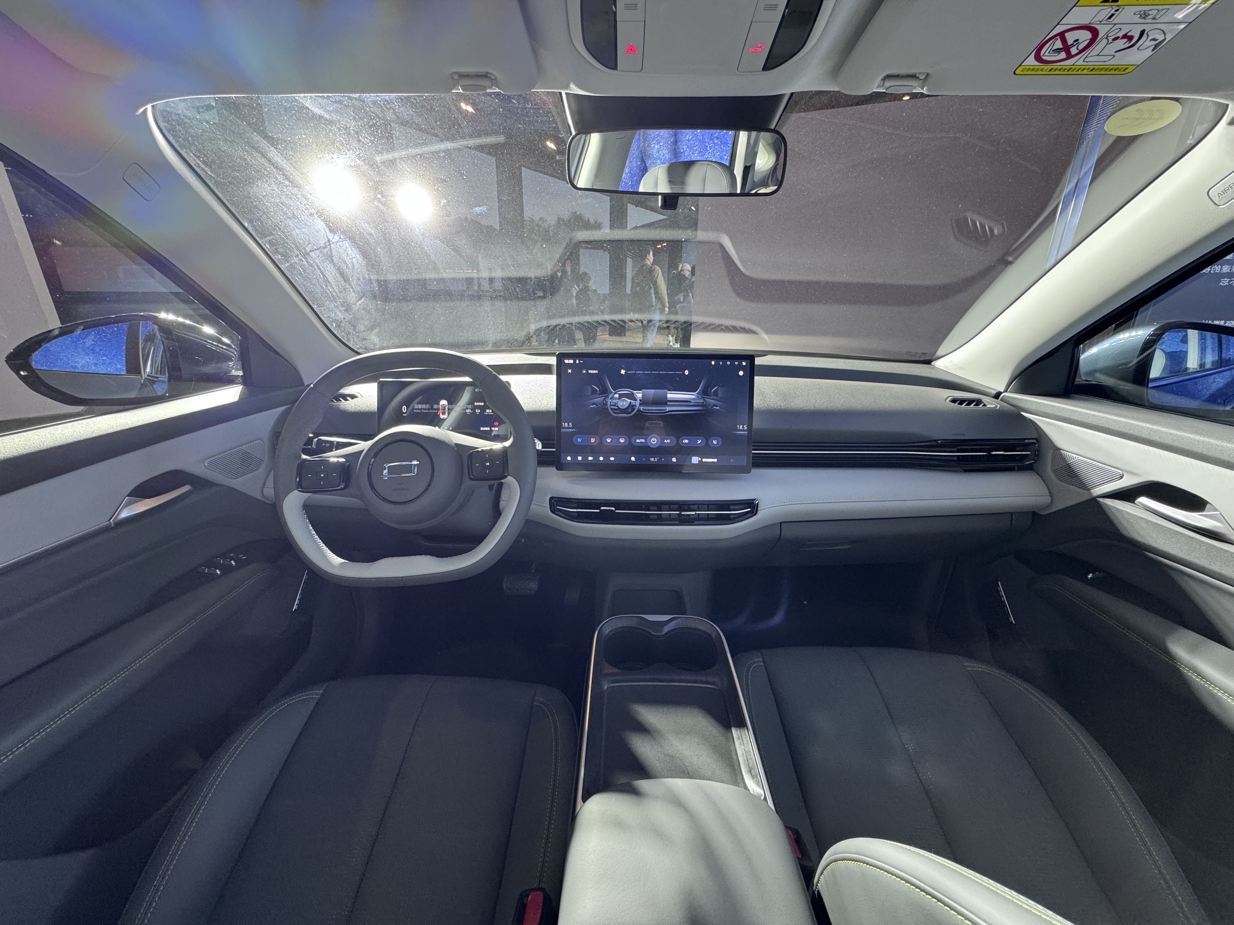 進入內部,一汽奔騰悦意03的中控台搭載14.6英寸懸浮中控屏和8.8英寸液晶儀表盤,採用取消物理按鍵的極簡設計。車機系統搭載融合DeepSeek的AI大模型,支持連續語音、文生圖、多意圖指令等功能。