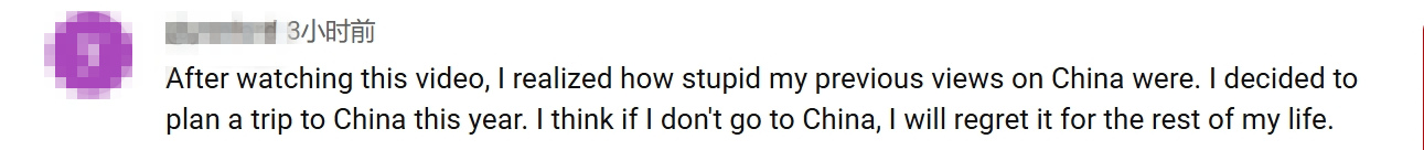 還有人已經成功被種草,決定來一場説走就走的中國之行,“看完這段視頻後,我意識到自己以前對中國的看法是多麼愚蠢。我決定計劃今年去中國旅行。我想,如果不去中國,我會後悔一輩子。”