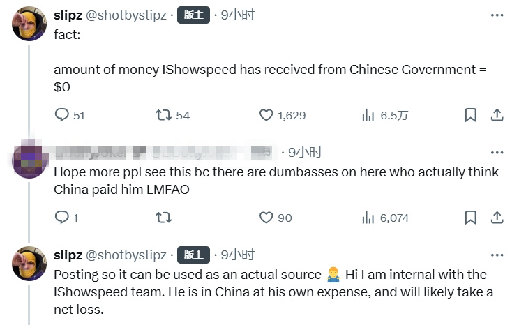甲亢哥團隊的視頻製作人也第一時間在社媒上公開回應,此次中國行全程自費,團隊沒有從中國政府方面獲得一分錢。