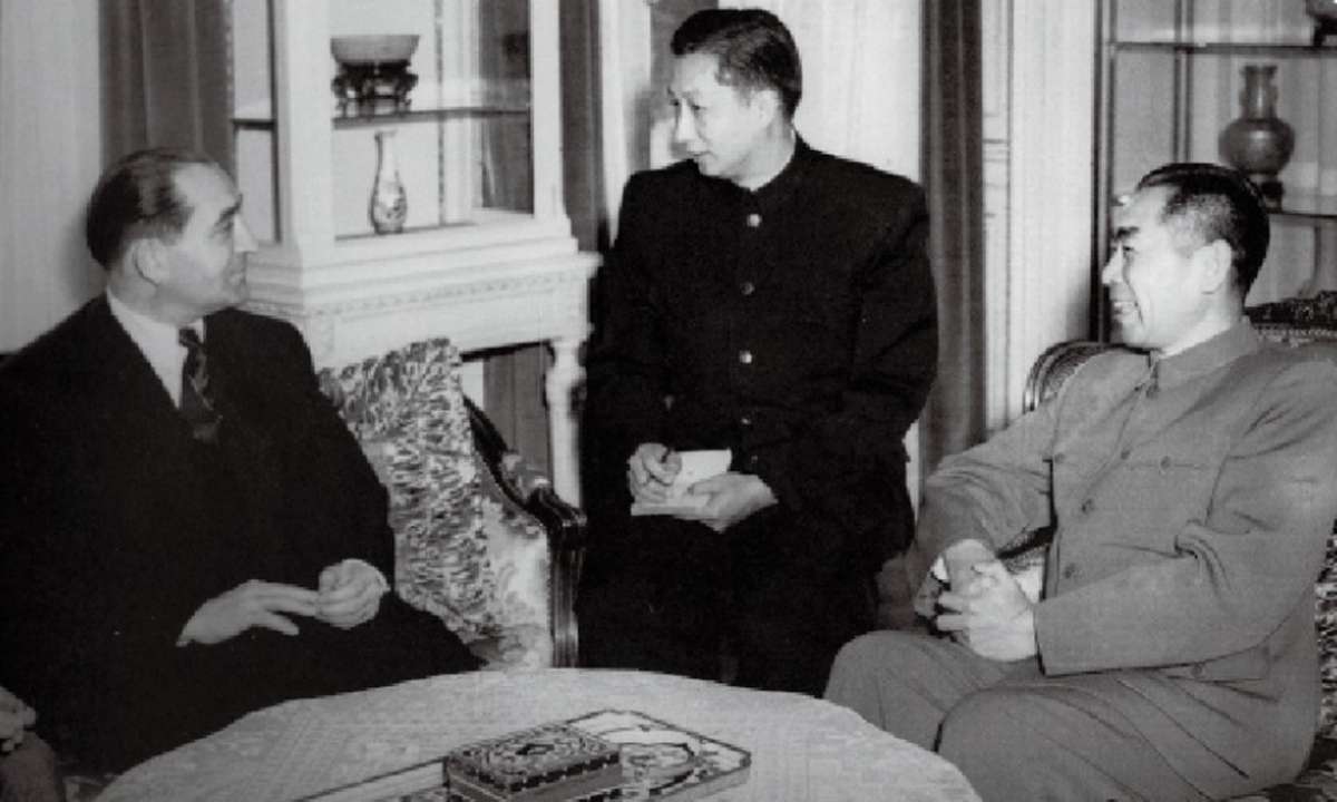1954年6月19日,周恩來總理在中國駐瑞士大使館與時任法國總理皮埃爾·孟戴斯-弗朗斯討論中法建交事宜。