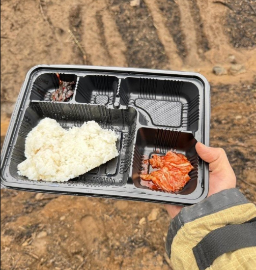 網友曝光的韓國山火一線消防員飯菜。 X網站