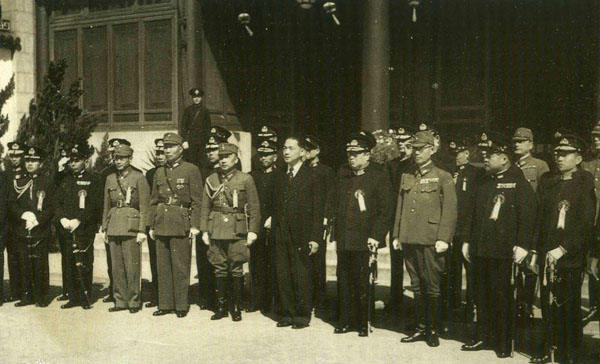 汪精衞在南京同日本侵華軍司令官西尾壽造和負責中國方面艦隊司令官川古志郎會談。