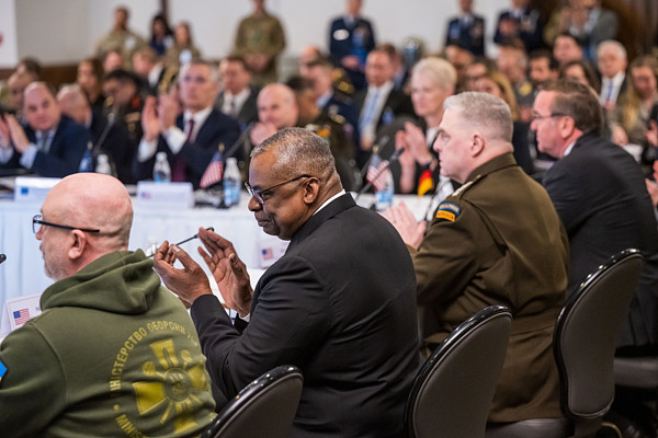 2023年1月,在德國拉姆施泰因空軍基地舉行的烏克蘭國防聯絡小組會議 視覺中國