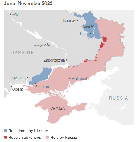 2022年6月至11月的戰線變化 《紐約時報》報道截圖