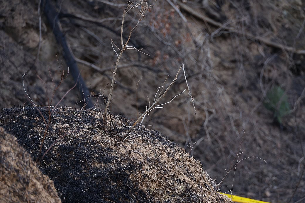 當地時間3月29日,在慶尚北道義城郡,疑似森林大火的起火地點發現打火機。 韓聯社