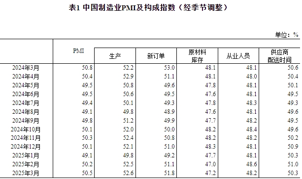連續兩月回升,3月製造業PMI達50.5%