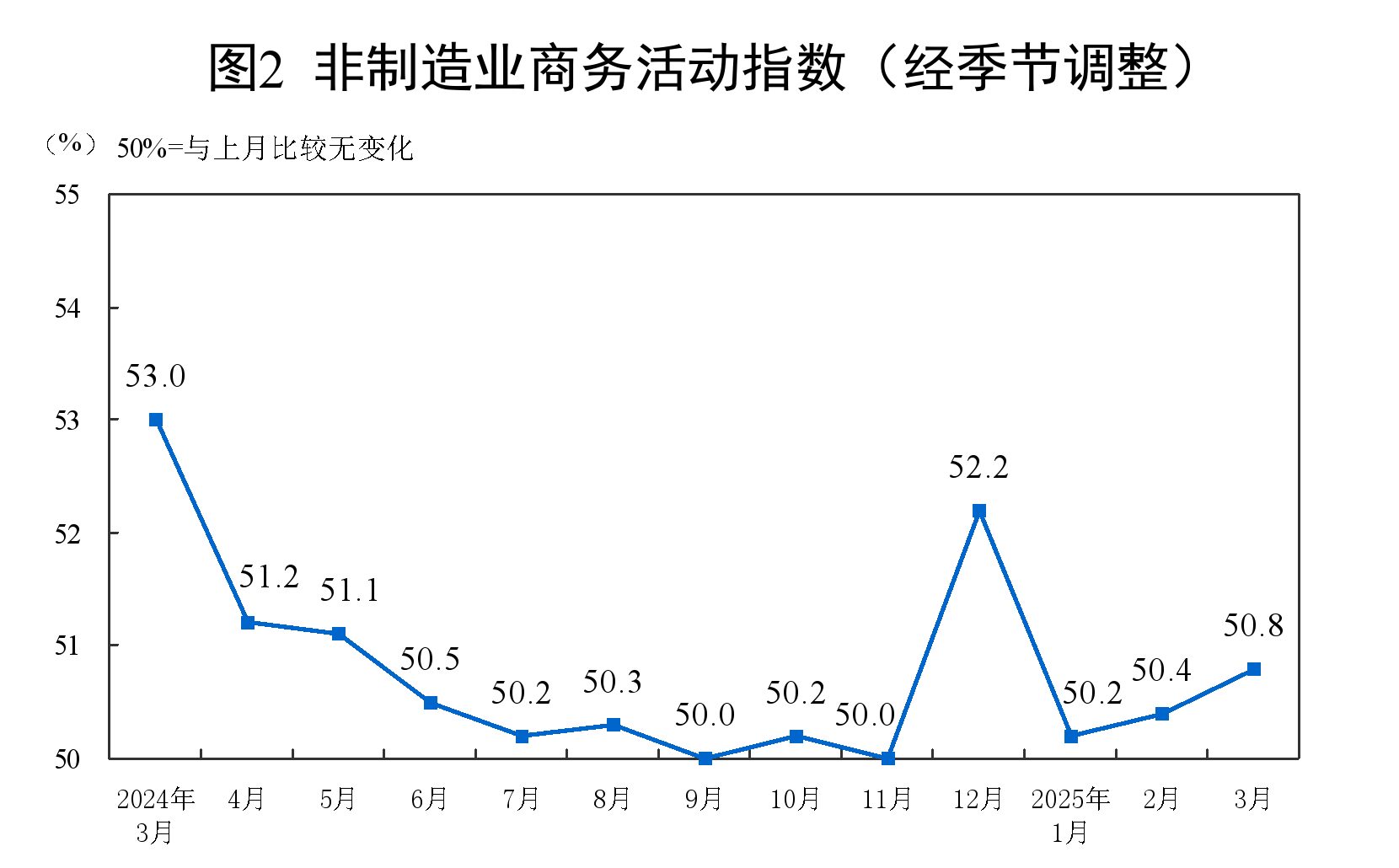 3月份,非製造業商務活動指數為50.8%,比上月上升0.4個百分點,非製造業擴張步伐有所加快。