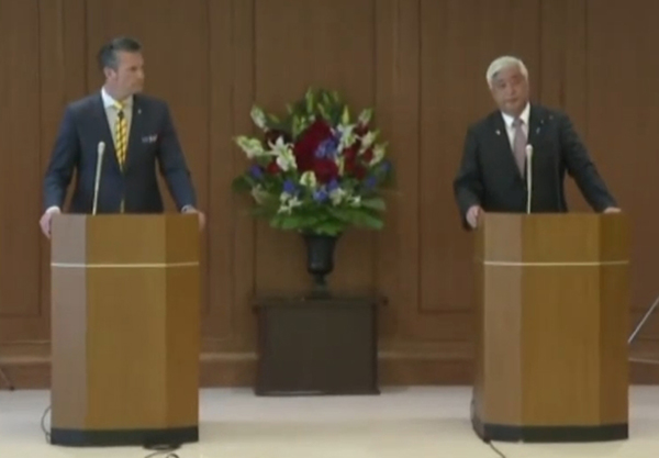 當地時間30日,美國國防部長赫格塞思與日本防衞大臣中谷元舉行新聞發佈會。 視頻截圖