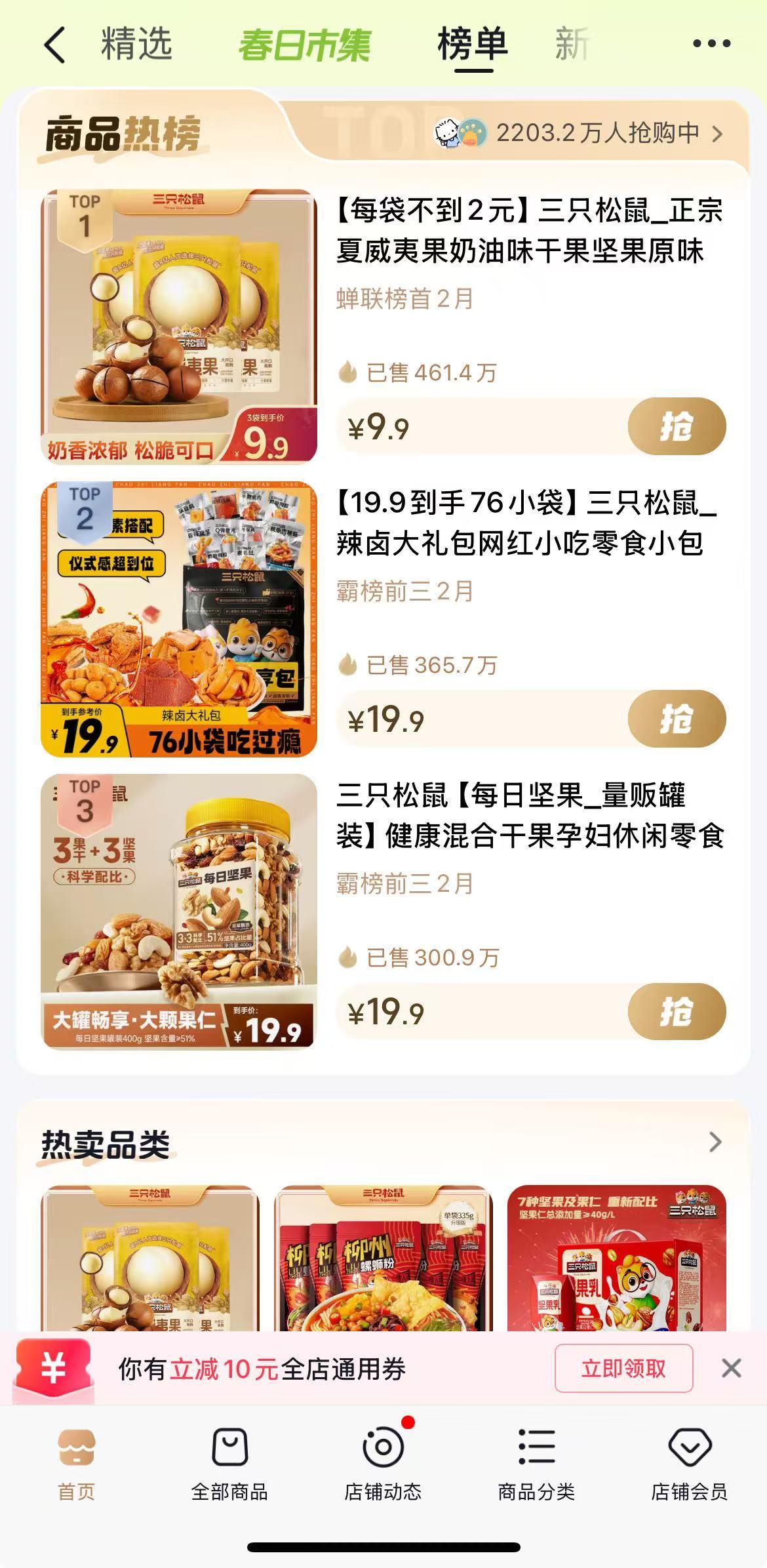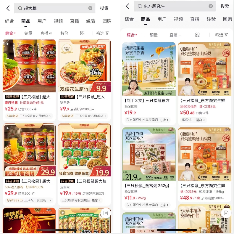 有業內人士分析稱“抖+N”戰略是三隻松鼠從流量驅動向效率驅動轉型的核心路徑:以競品終端價倒推成本,通過規模效應讓利消費者。