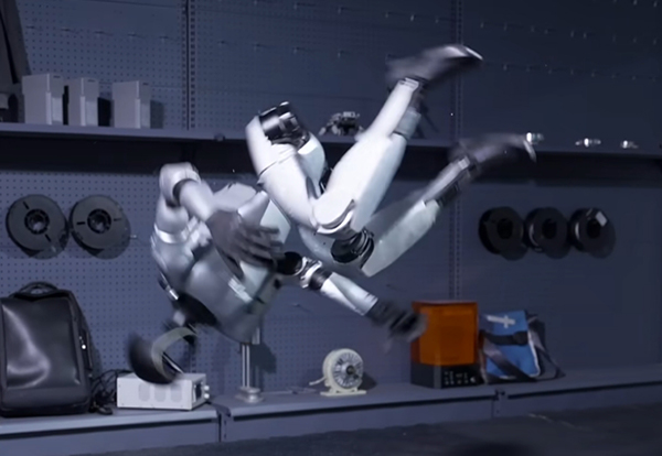在中國春節聯歡晚會完成扭秧歌表演的宇樹人形機器人,其G1型號3月19日完成了原地側空翻,是全球首次完成側空翻的人形機器人。