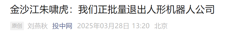 從金額角度來看,金沙江投資退出的數百萬投資在萬億規模機器人市場似乎並不會引起關注,但由於朱嘯虎素來以口無遮攔著稱,近年來“VC投資五年回本論”,“堅決不投大模型企業”均引發了行業熱議。