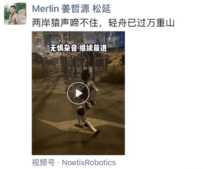 而另一家企業松延動力則於3月29日晚發佈了一條人形機器人行走的短視頻,配文“無懼雜音,繼續前進”,公司董事長姜哲源將視頻轉發朋友圈並寫道“兩岸猿聲啼不住,輕舟已過萬重山”。