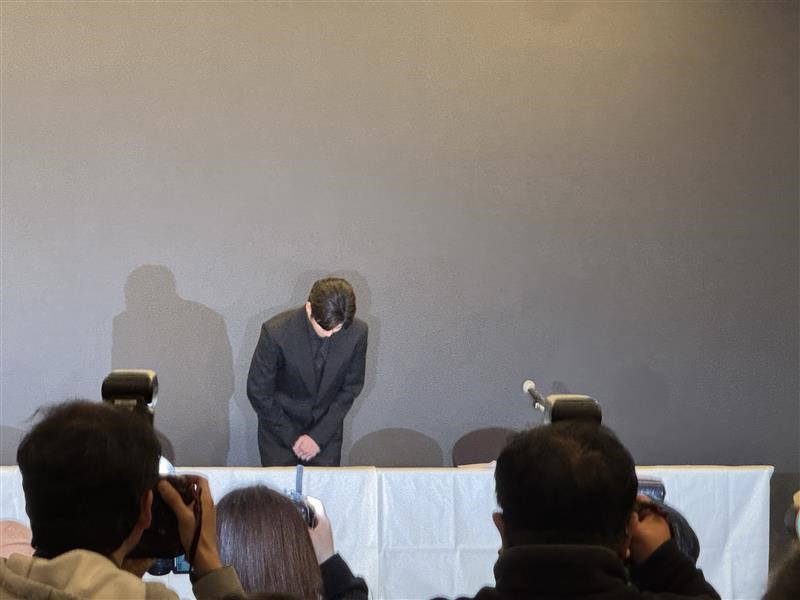 發佈會一開始,金秀賢就鞠躬致歉:“首先,我很抱歉。因為我,我想很多人都在受苦。我也很遺憾已故演員金賽綸沒能安息。”