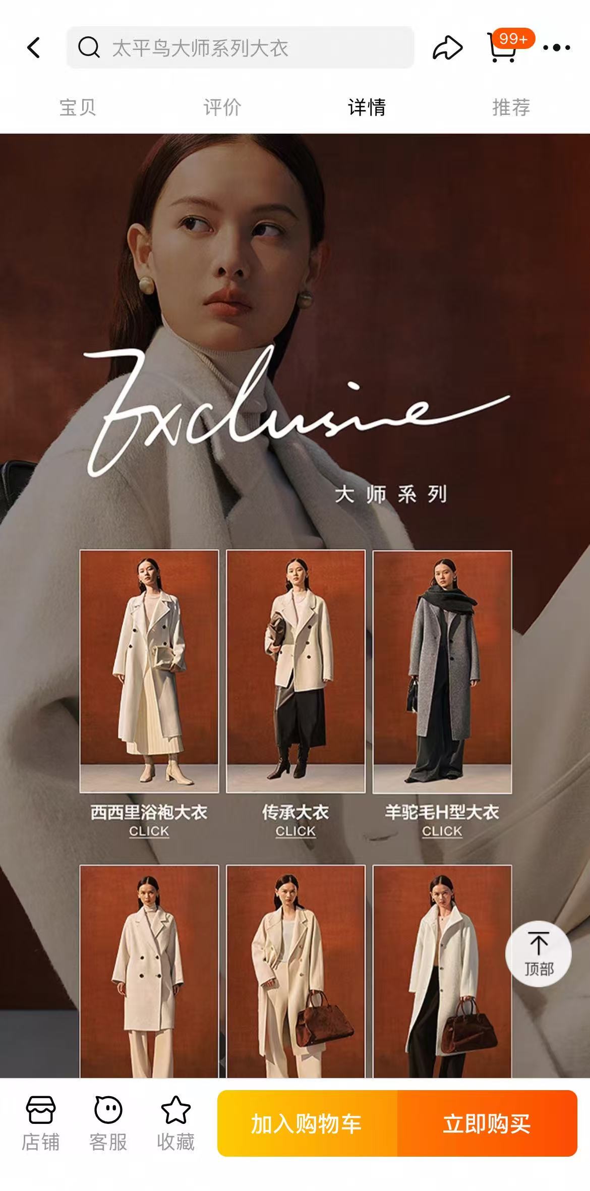 太平鳥正在逐漸摒棄之前頻繁聯名、加快推新的快時尚策略,轉向品質時尚的定位。一方面,太平鳥通過全球溯源珍稀原料與高奢級工藝的深度融合推出「甄質•新生」冬季品質系列,打造大師大衣系列與襯衫羽絨兩大標杆級產品矩陣。另一面,太平鳥還瞄準了在年輕人中大熱的“都市户外”賽道,以及推出了“只做優質好羽絨”的御冬產品。