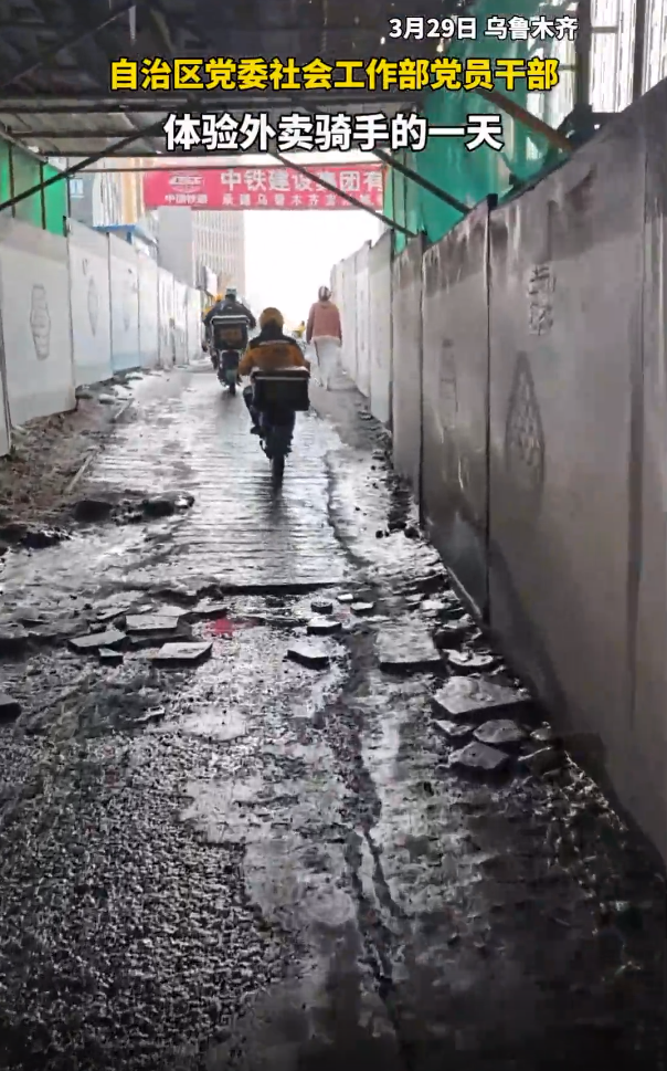 3月29日,新疆維吾爾自治區黨委社會工作部組織多名處級幹部、各科室負責人,體驗送餐過程,以精準收集外賣騎手的實際困難與訴求。