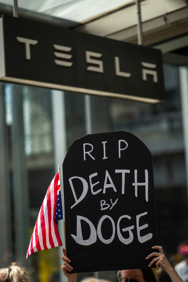 這種“大刀闊斧”的改革引發的不滿情緒,除了針對馬斯克本人也波及到了特斯拉。3月29日,一場聲勢浩大的“打倒特斯拉”(Tesla Takedown)抗議活動在美國、加拿大以及歐洲上演。成千上萬名反特斯拉抗議者走上街頭,反對馬斯克及其領導的政府效率部削減人道主義援助、關閉聯邦機構並解僱政府僱員的舉措。