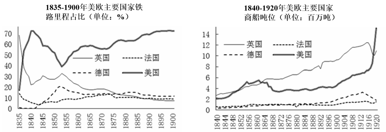 企業運營和組織管理構建了行業運行的微觀生態,美國地理和產業大縱深從宏觀上拉起了一片廣闊場景。就在美國近代鋼鐵工業起步的1860年,鐵路里程已經高達4.9萬公里,先於鋼鐵半個世紀超過了英法德等國的總和,其中九成以上是20年內興建。