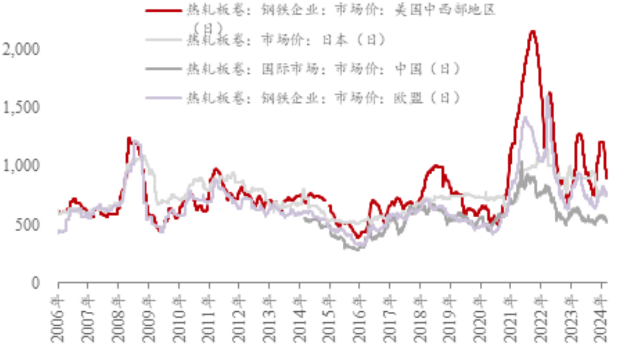 美國鋼材價格與中歐日對比(單位:美元/噸)圖片來源:鋼聯數據