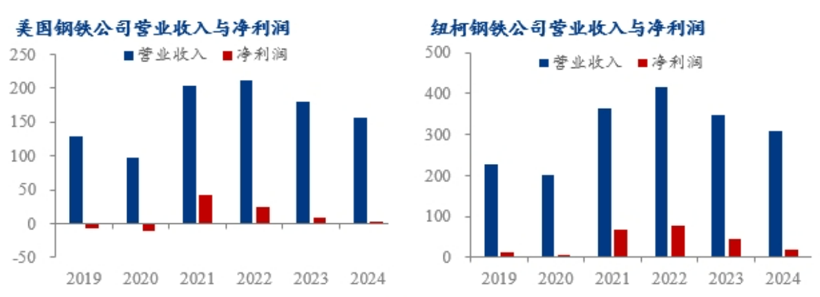 美國鋼鐵公司與紐柯鋼鐵公司六年營收與淨利潤圖表來源:Mysteel
