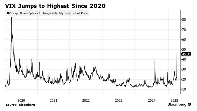 “關税焦慮席捲華爾街”,CNN稱,雖然美國當天(4日)發佈的就業增長數據超出預期,但關税焦慮依然主導市場情緒。芝加哥期權交易所(Cboe)波動率指數(即VIX“恐慌指數”)暴漲50%,飆升至45以上,達2020年以來最高點。
