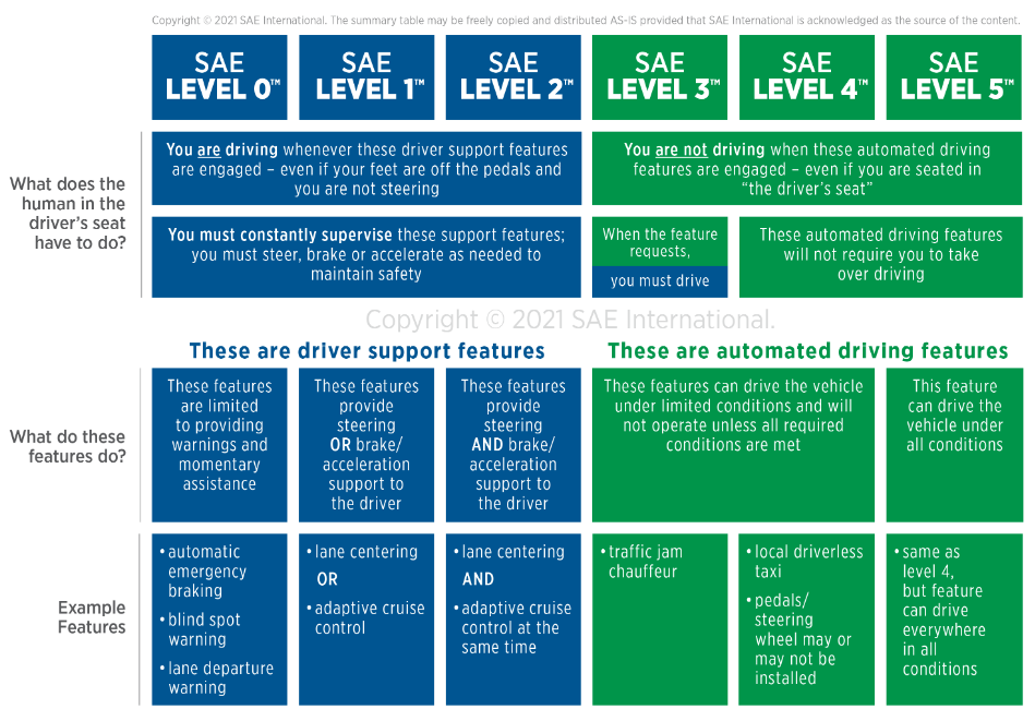 就駕駛功能而言,中國以及國際上都有駕駛自動化的分級標準。
