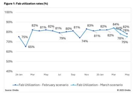 4月7日,市場調研機構Omdia發佈報告,美國針對電視、個人計算機及智能型手機等顯示應用產品的新關税政策所帶來的不確定性,加上品牌商與代工廠面板訂單減少,正促使面板廠商調降產能利用率。該機構預測利用率將於2025年4月降至80%以下,並在2025年5月進一步下滑至76%。