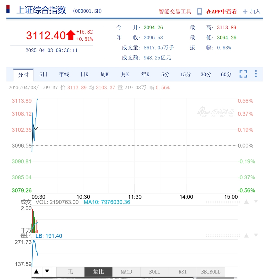 A股三大指數集體高開,創業板指漲超3% guancha 2025-04-08 4月8日,A股三大指數集體高開。截至發稿,上證指數漲0.51%,深證成指漲1.16%,創業板指漲3.53%。 香港恒生指數上漲3.07%。恒生科技指數漲超4% 本文系觀察者網獨家稿件,未經授權,不得轉載。