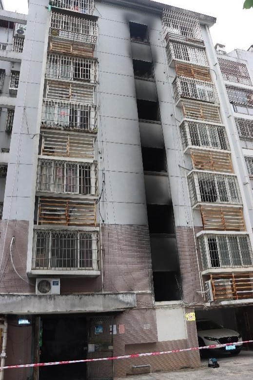 涉事建築為西莊小區南區12號樓,地上7層(一層架空層、二至七層住宅),鋼筋混凝土結構,建築面積4242.9平方米,屬多層住宅建築。該樓共4個梯位,着火梯位為該樓2梯。