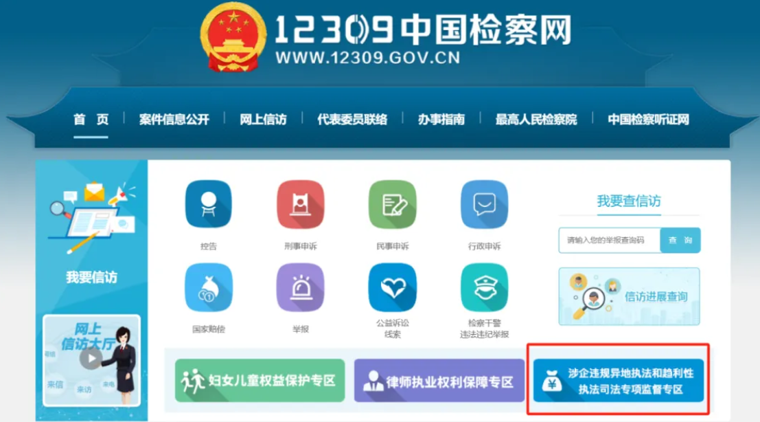 針對涉企違規異地執法等,12309中國檢察網設立“專項監督專區”