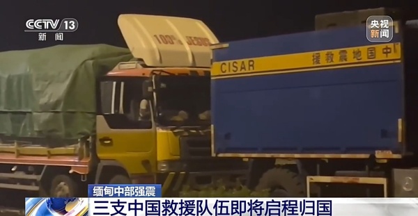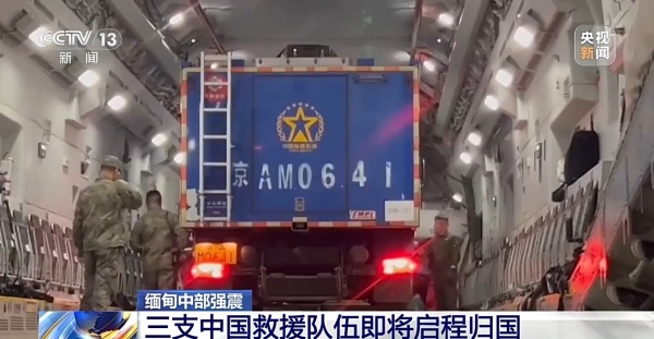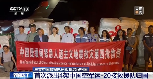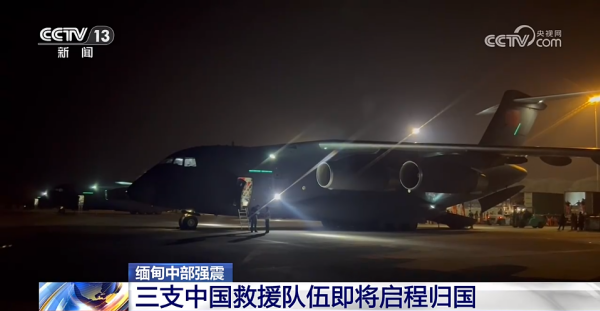 今天上午,赴緬甸開展地震救援的中國救援隊、中國國際救援隊和中國香港特區救援隊完成任務,將乘坐4架中國空軍運-20飛機從內比都啓程回國,緬甸方面代表前往機場為中國救援隊伍送行。
