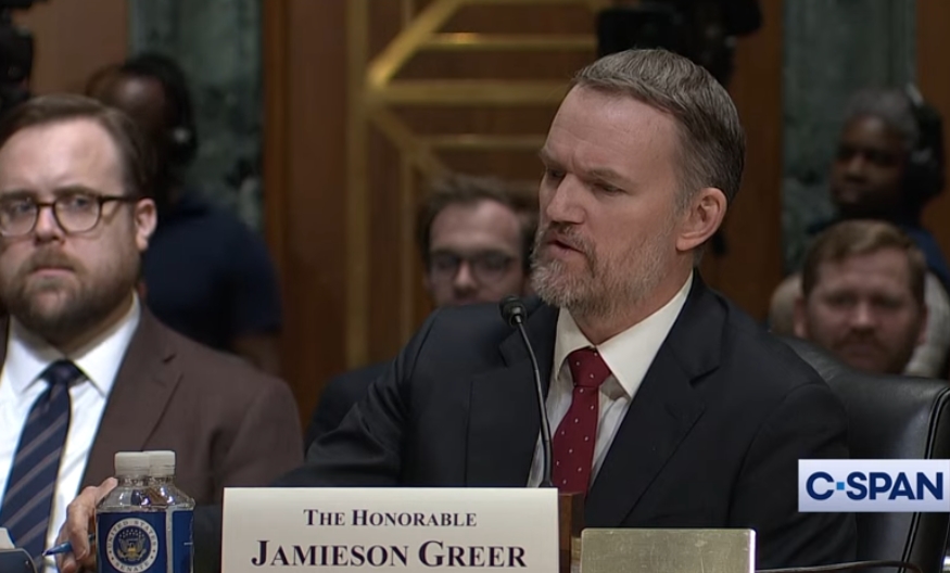 4月8日,美國貿易代表賈米森·格里爾在國會接受質詢。 C-SPAN