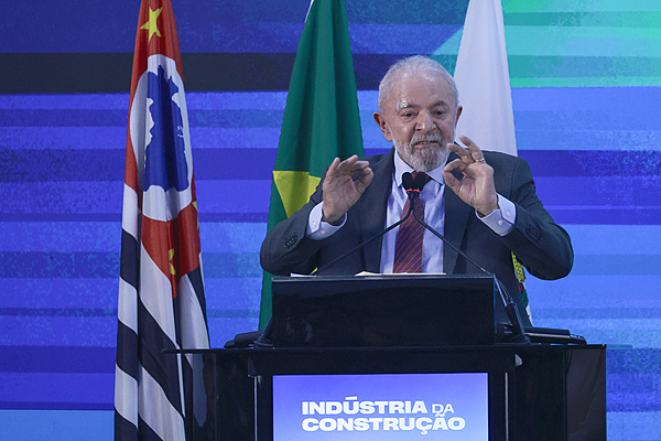 4月8日,巴西聖保羅,盧拉在國際建築博覽會(FEICON)開幕式上發言。 視覺中國