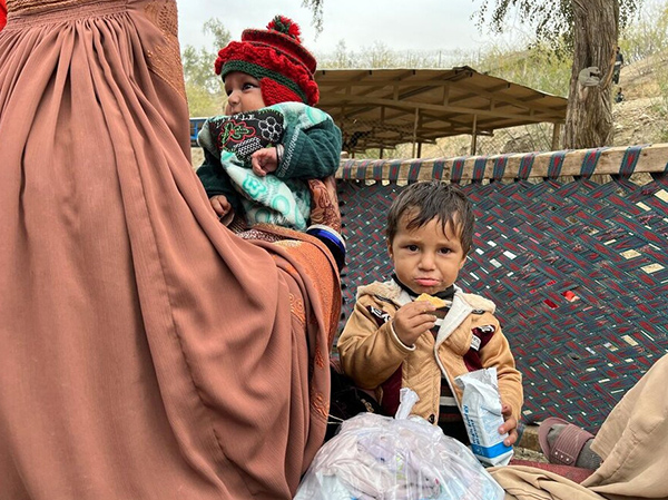 阿富汗兒童正吃着世界糧食計劃署提供的餅乾。 世界糧食計劃署