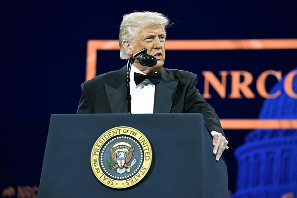 4月8日,美國華盛頓特區,特朗普在國立建築博物館參加國立共和黨委員會(NRCC)舉辦的活動。 視覺中國