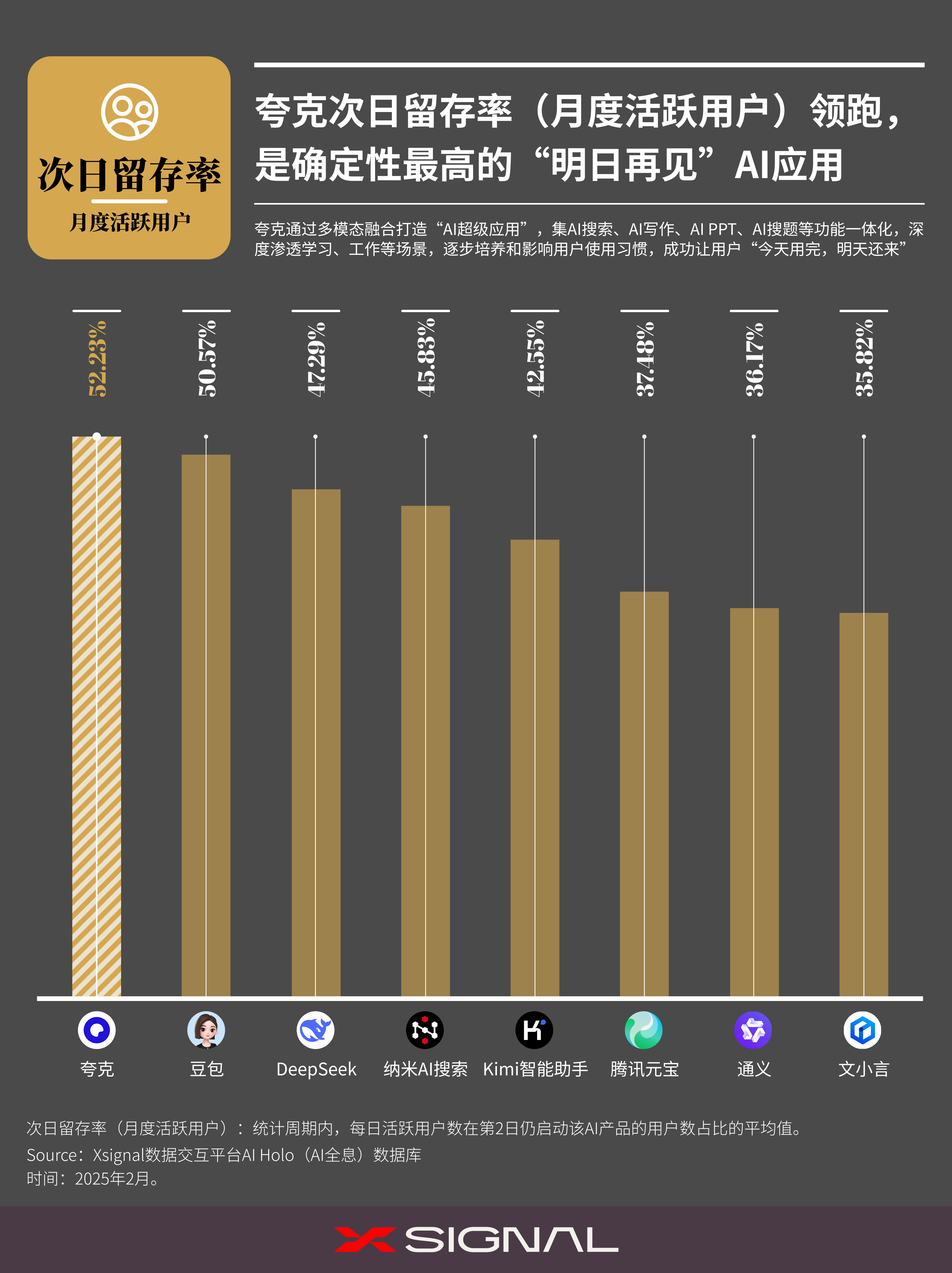 Xsignal發佈多項AI應用核心數據 夸克次日留存率52%領跑行業