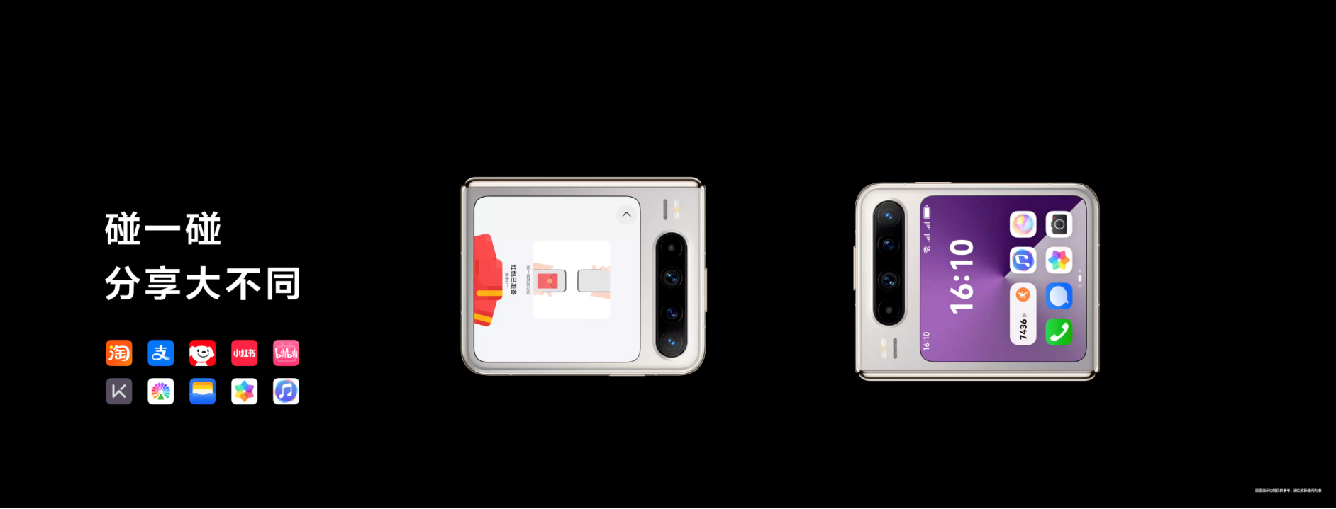 “碰一碰”分享,社交快如魔法:華為Pura X外屏的創新不止於操控,也延伸至社交分享場景。原本在鴻蒙5上備受好評的“碰一碰”功能如今在外屏上也可實現。小紅書“碰一碰”分享種草筆記與個人主頁;支付寶“碰一碰”秒發紅包;京東商品詳情頁“碰一碰”即可分享。這種便捷而又炫酷的交互,讓社交分享也輕鬆“快人一步”。