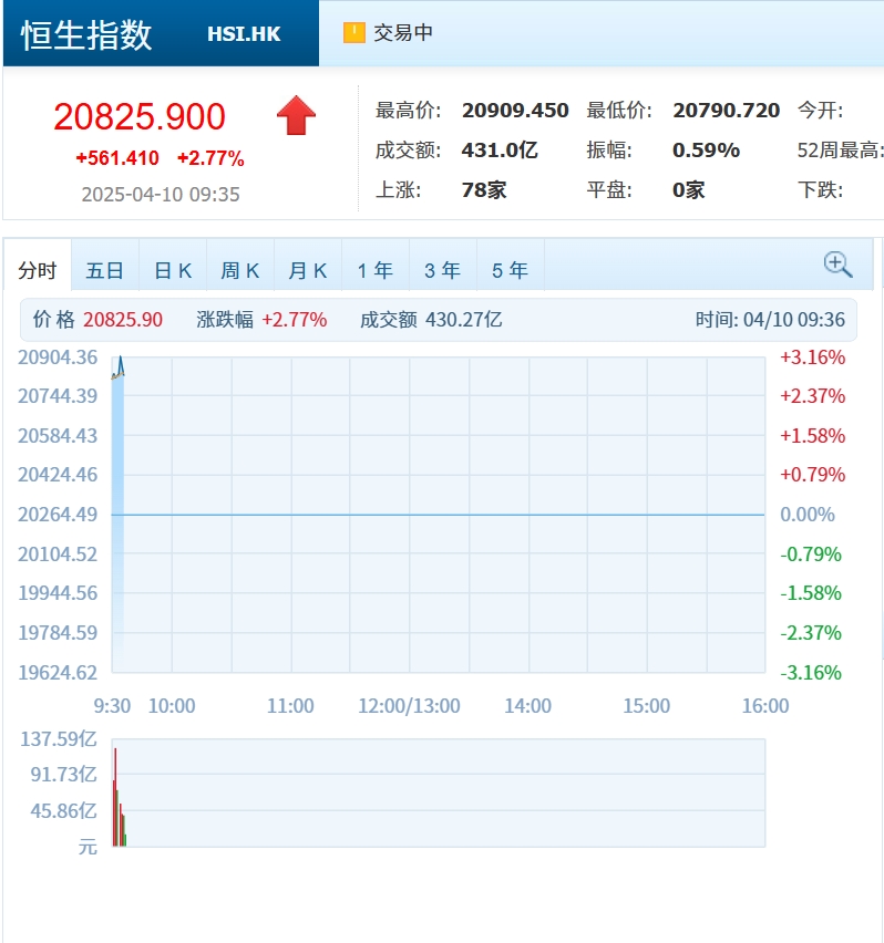 AH股集體高開,創業板漲超3%,恆科指漲近4%