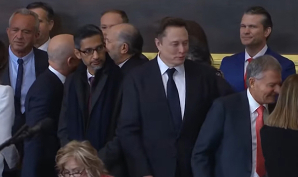 馬斯克、皮查伊出席特朗普就職典禮。 視頻截圖