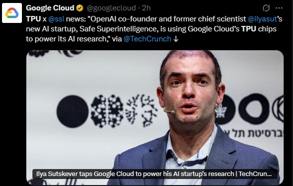 據悉,OpenAI聯合創始人兼首席科學家Ilya Stutskever的AI初創公司Safe Superintelligence 正在利用Google Cloud的TPU芯片來支持其AI研究。